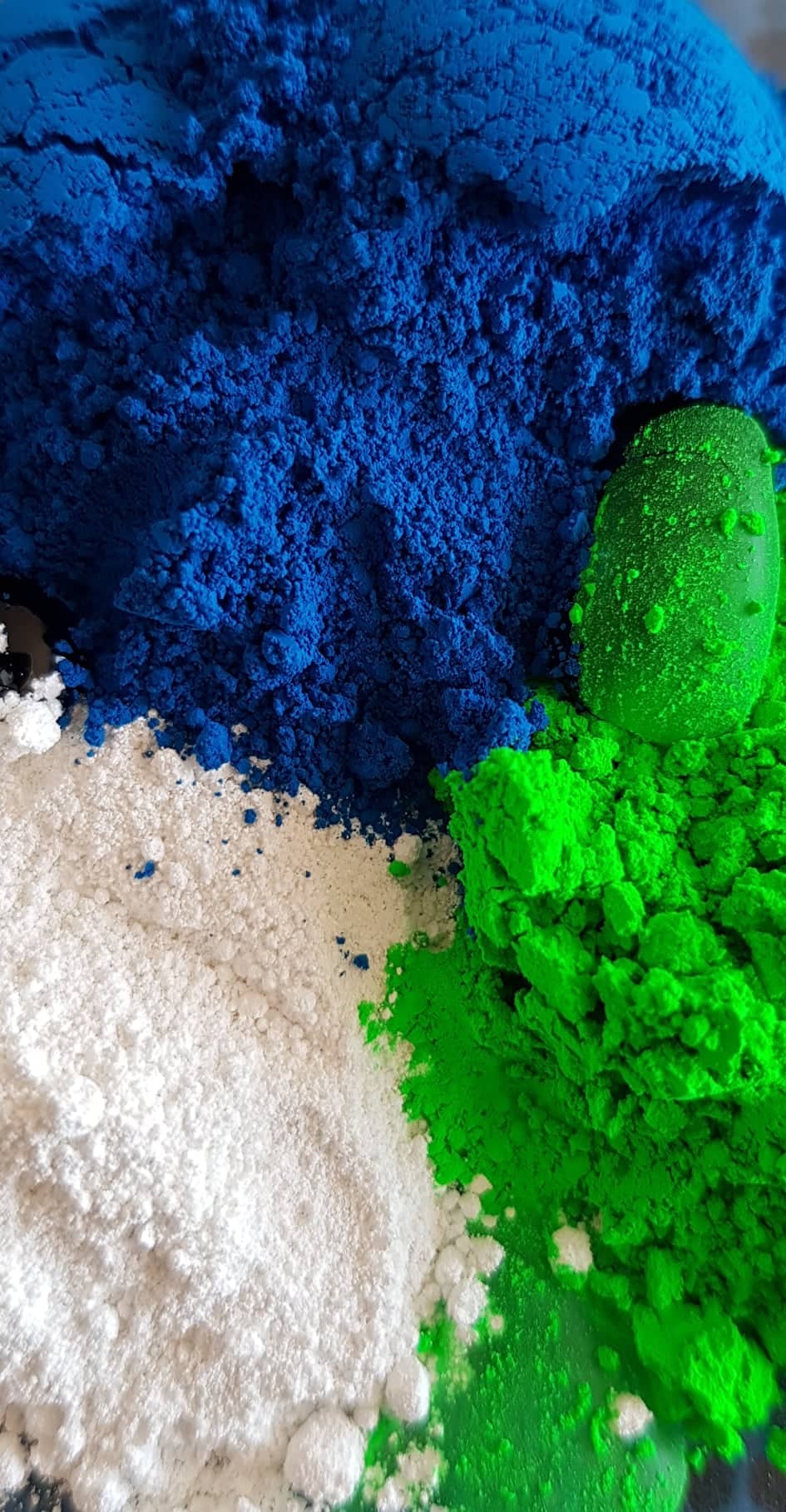 Fluorescents (Neons) - some can be very fine, and take longer to mix.